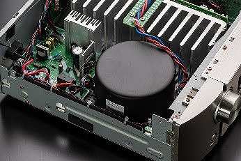 高効率で振動と漏洩磁束の少ない大容量トロイダル型電源トランスを搭載。音質に悪影響を及ぼす漏洩磁束を抑えるために、垂直方向の磁束漏れを抑えるアルミ製ショートリングに水平方向の磁束漏れを抑える珪素鋼板シールドを加えた2重シールドを施しています。