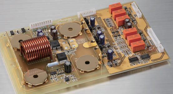 このレイアウトでは大電流ラインを最短距離で結び、左右チャンネルを対称に配置することにより、瞬発力と優れた空間表現力を両立しています。 |