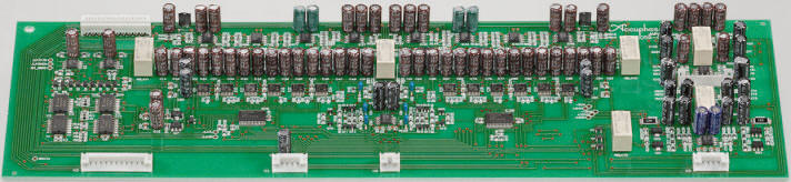 さらに高域の位相特性に優れたカレント・フィードバック増幅回路を採用し、インスツルメンテーション・アンプにより信号経路をバランス伝送。スピーカーの挙動に影響を与えるダンピング・ファクターは、低出力インピーダンス化のためパワーアンプからスピーカー出力端子間のパターンと配線を見直すことにより500を達成しました。